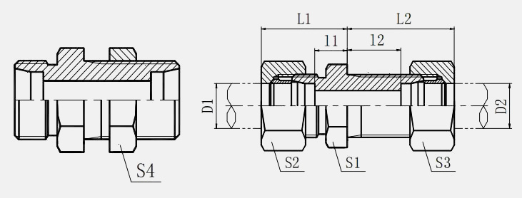 ENG6C-LN/6D-LN Gerade Schottverschraubungen der FI-GS-Serie ermöglichen die gerade Verbindung von zwei metrischen Rohren mit identischen Durchmessern durch eine Schottwand, gesichert mit einer Sechskant-Kontermutter. Sie sind in den Serien Extra-Light, Light und Heavy nach ISO 8434-1 / DIN 2353 erhältlich und für Nenndrücke bis 800 bar geeignet. Ausgelegt für eine Schottwandstärke von 16 mm. Rohrverbinder und Schneidringverschraubungen der Serie STAUFF Connect bestehen aus Stahl mit 24° Innenkegel. Für Hydraulik.